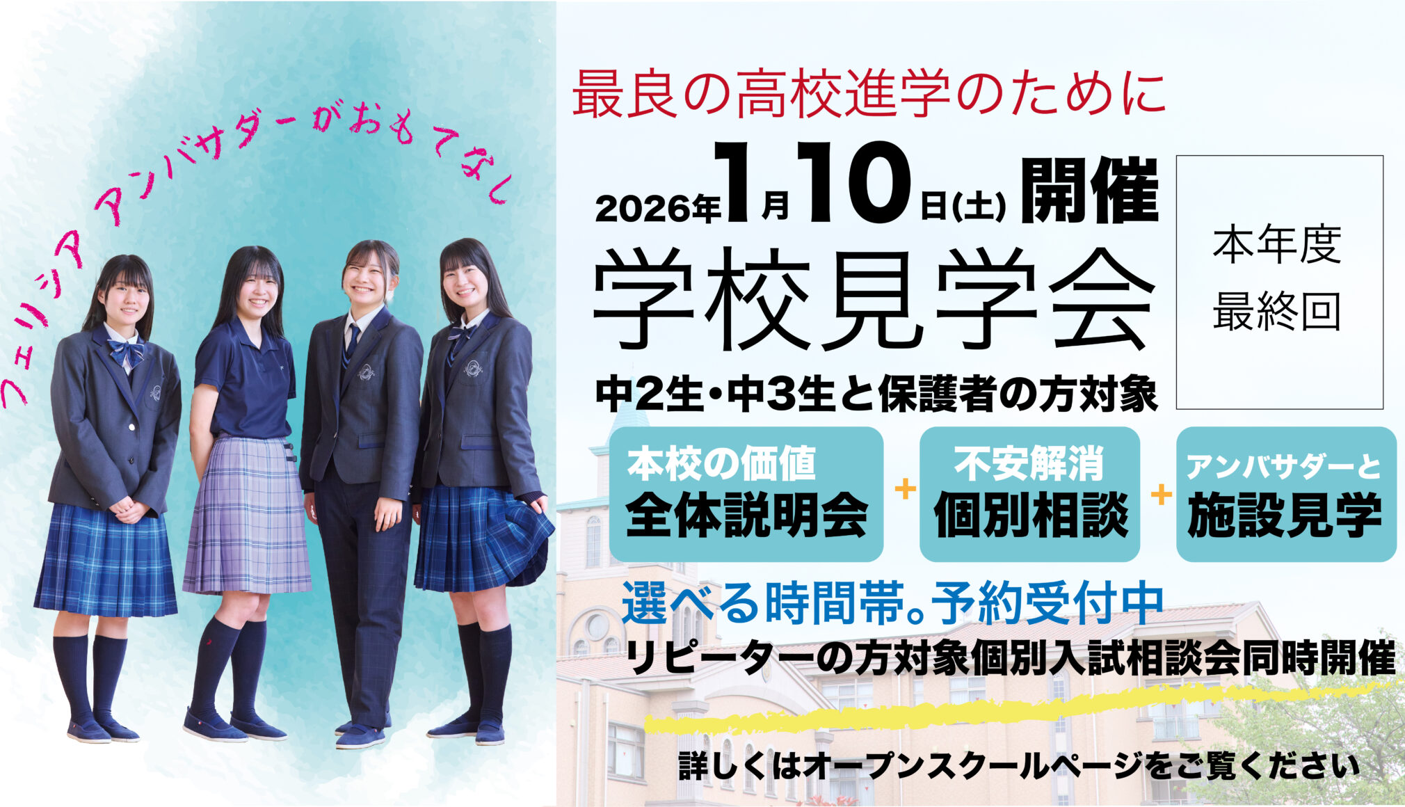 伝統と、建学の精神を大切にしつつ「鶴川高等学校」から「フェリシア高等学校」に校名変更いたしました。