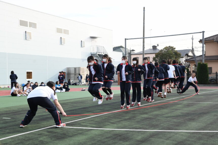 - ドッチボールの後は、校庭で「大縄跳び」です。