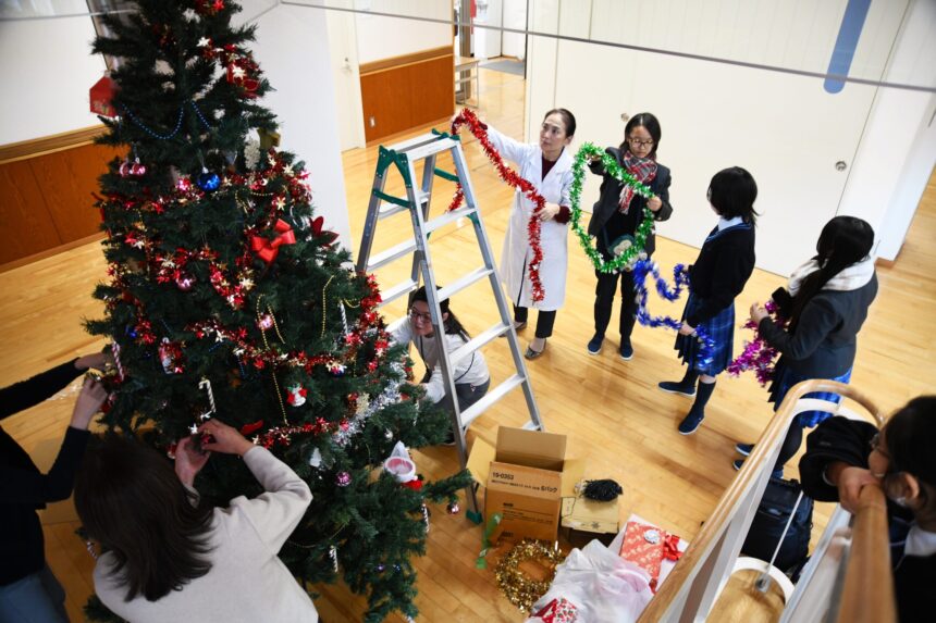 フェリシア高校に今年も、クリスマスツリーが設置されました!