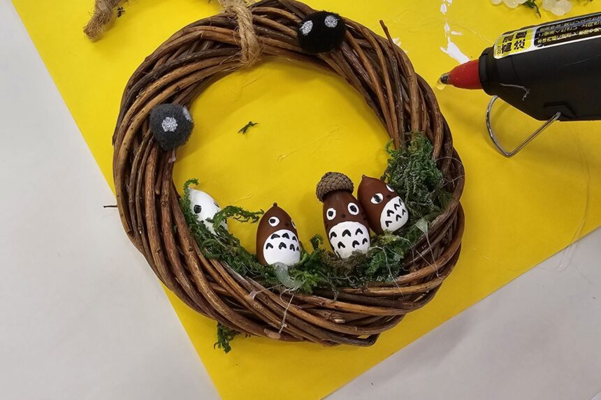 10月の部活動体験では、自然物を使って、写真のようなのリースを制作予定です。