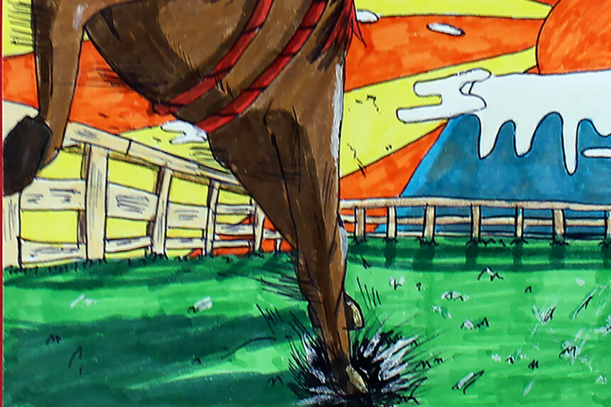 「真船さんの作品は躍動感ある構図や色使いなどいちばん目を引く一番人気の作品でした。投票した人からは『最初大人の作品かと思った』の声も聞かれました」と大久保館長。真船さんは「勢いを表現するため構図や強調線を入れるなど工夫しました。受賞して明るい気持ちになりました 」。