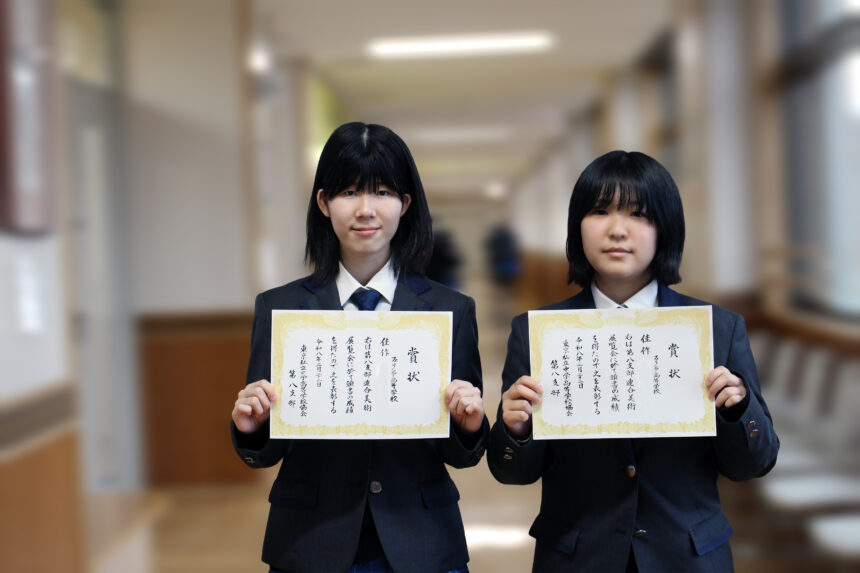 書道の部入賞のAさんは3年連続の受賞。書道部部長としても活躍しました。「部活のない日も展覧会出品に向け書道室にいることが多かったです」とAさん。これまでも数々の受賞歴を持ちますが「大学ではスポーツ栄養士に向けて勉強します。バレーボールが好きなのでマネージャーとして選手の栄養管理もできたらと思います」。