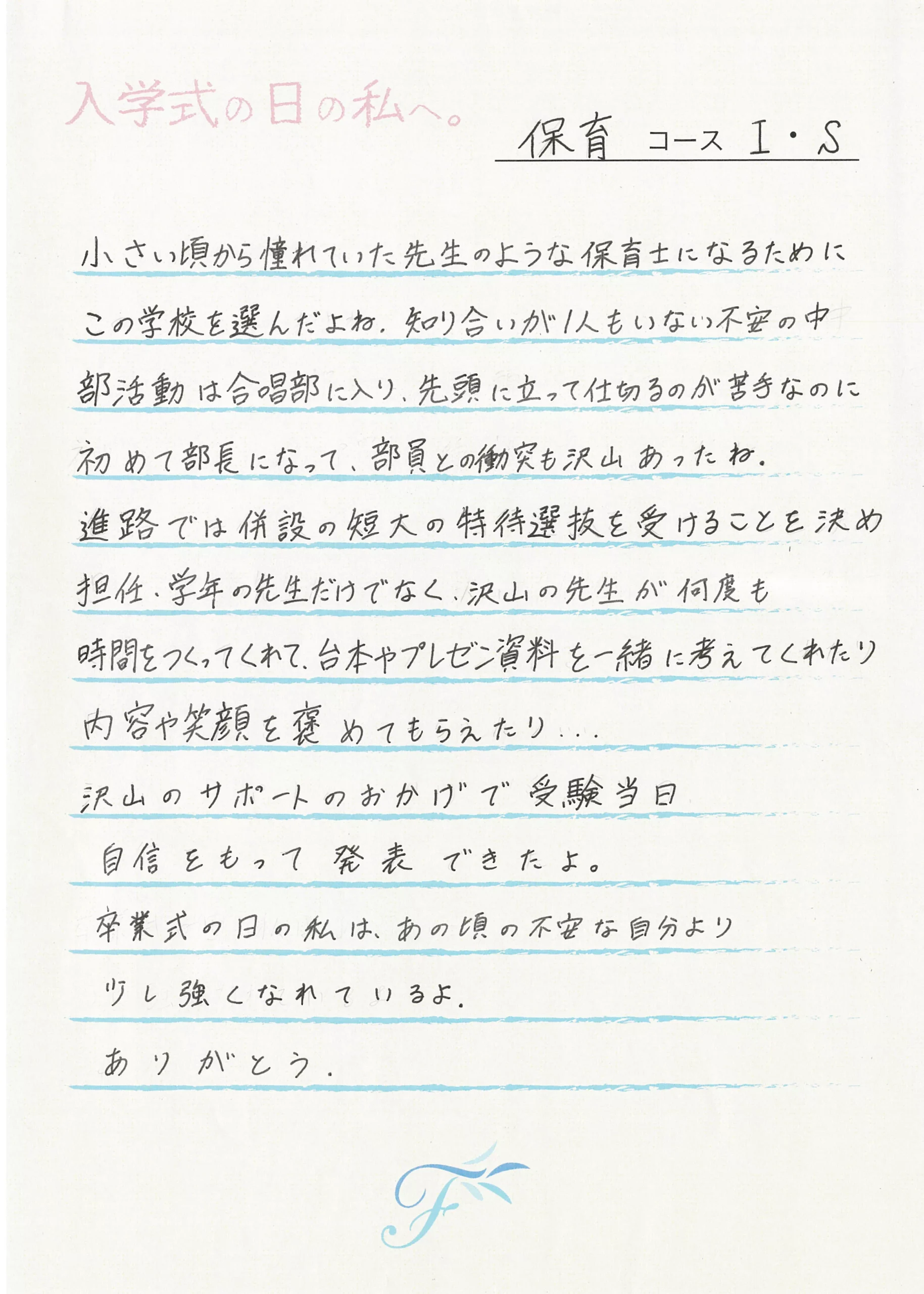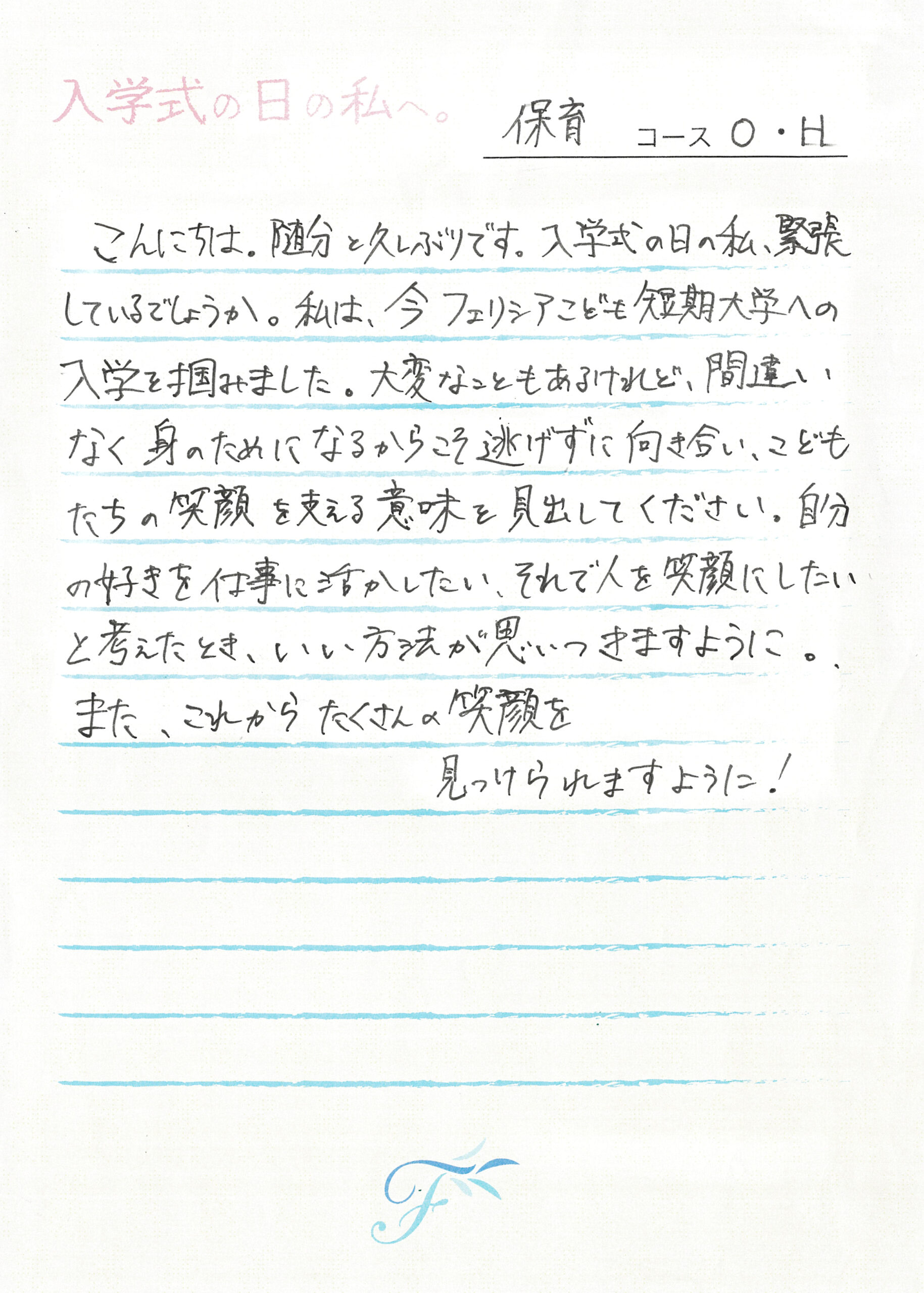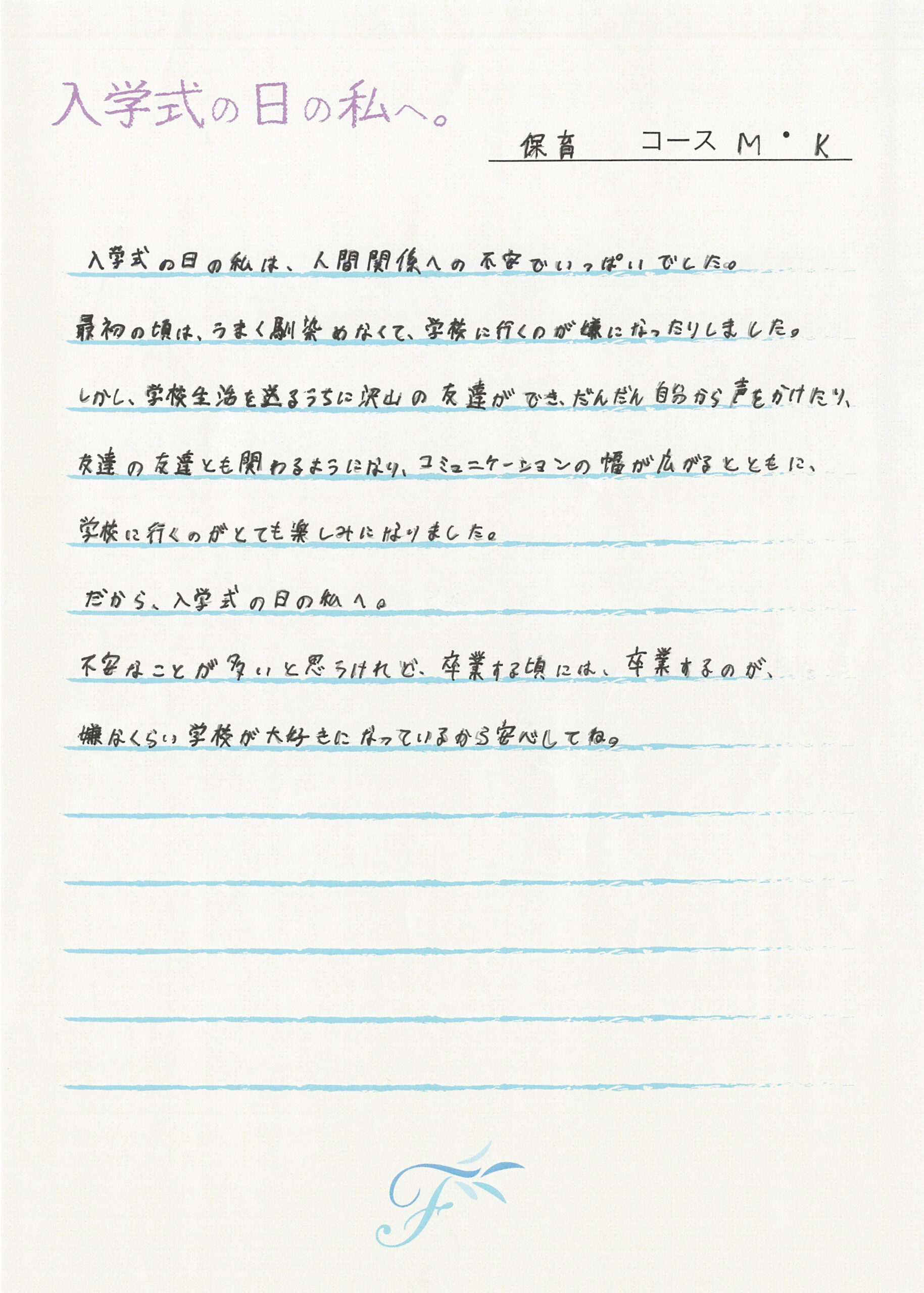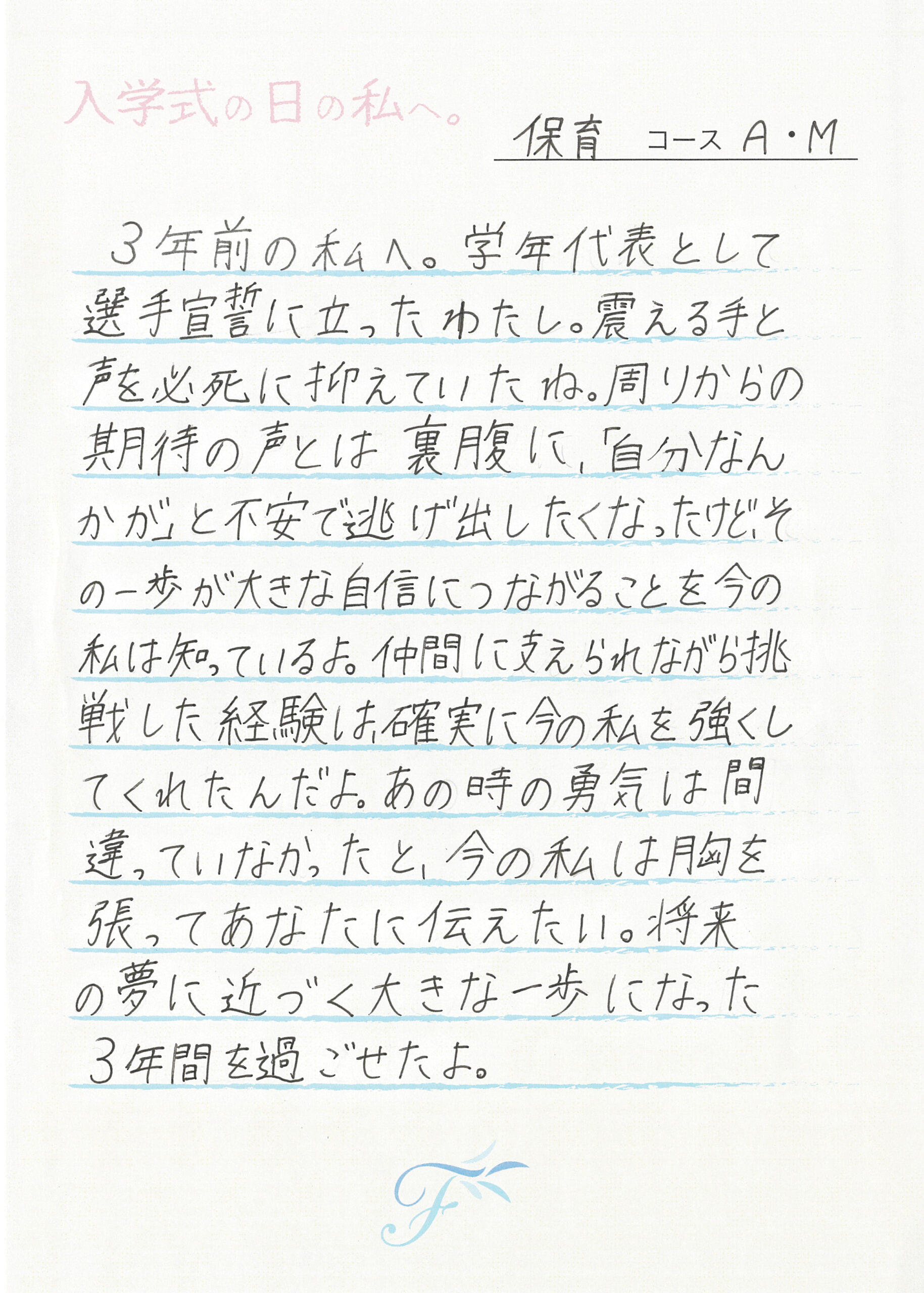 入学式の日の私へ 入学式の日の私へ