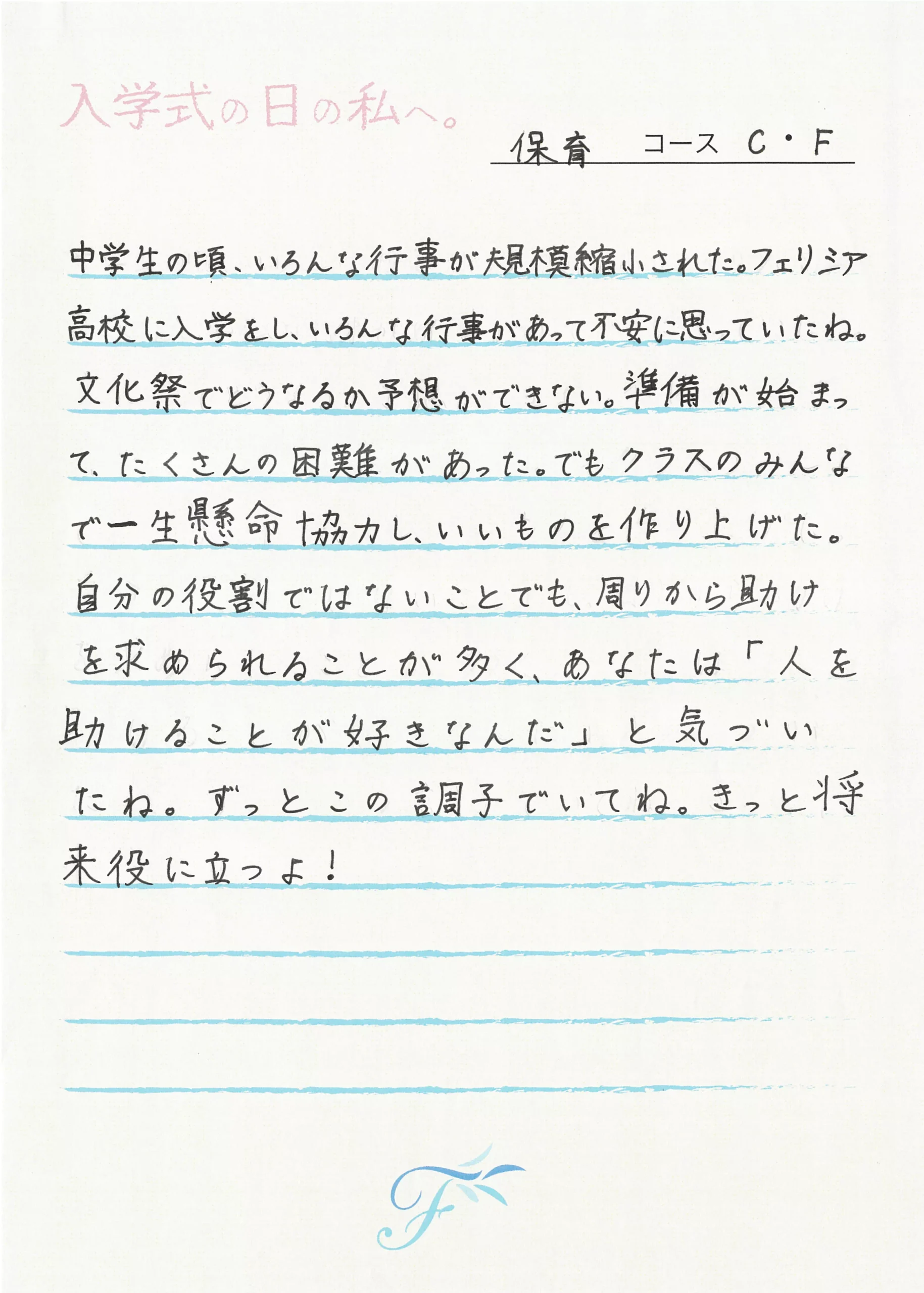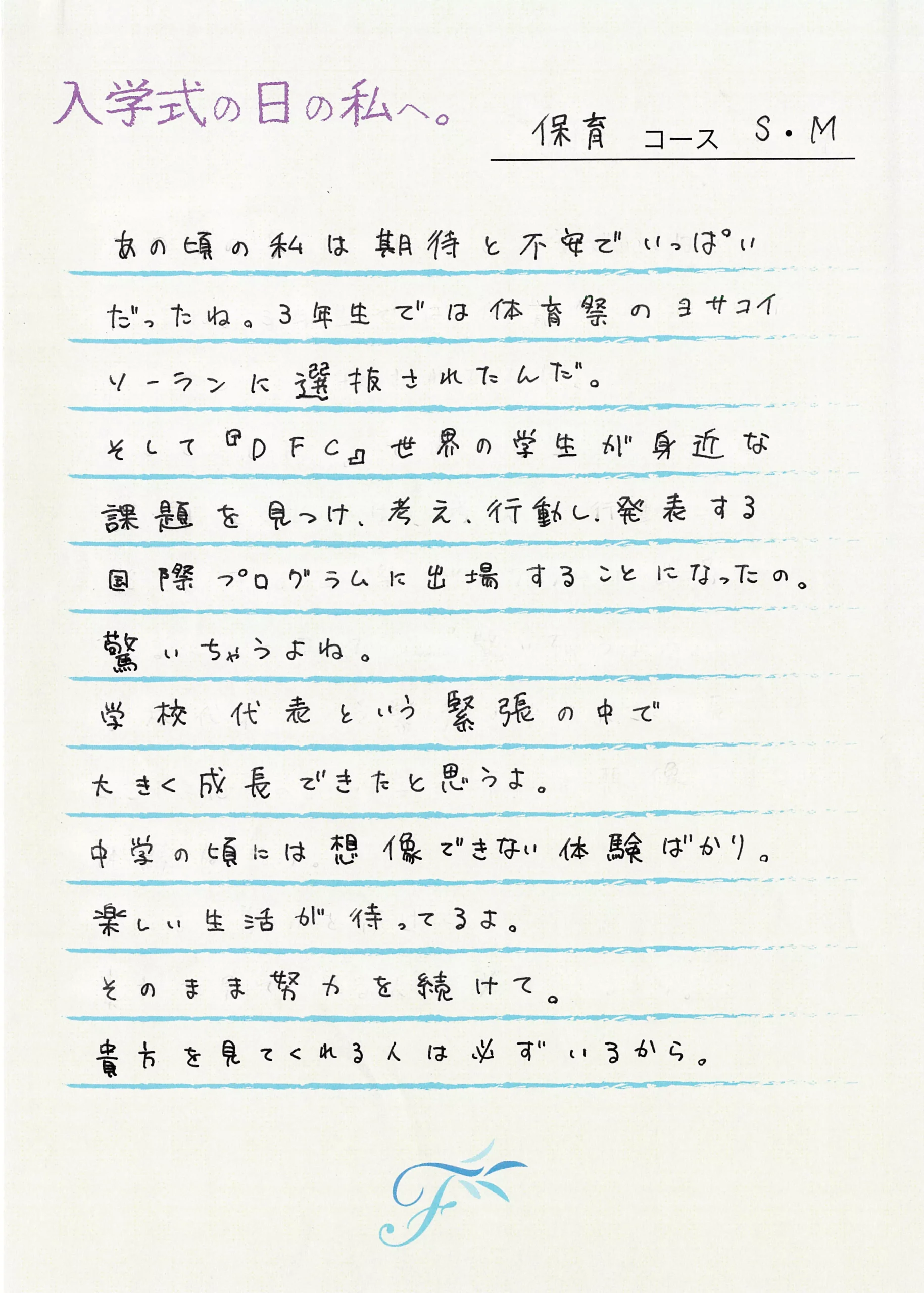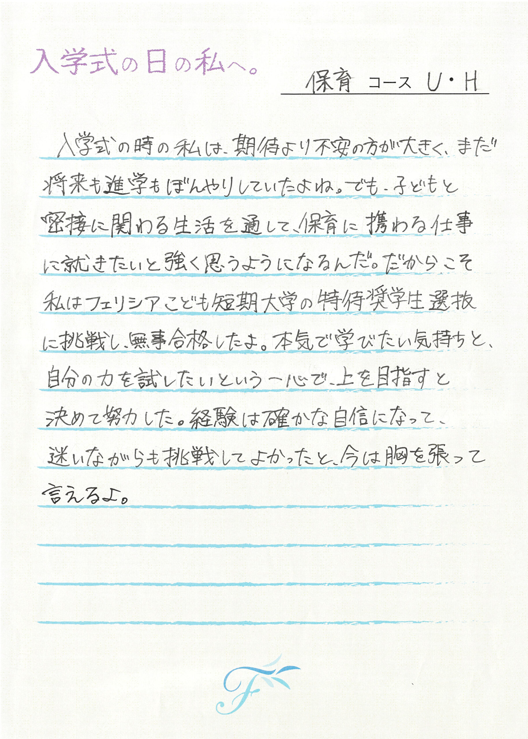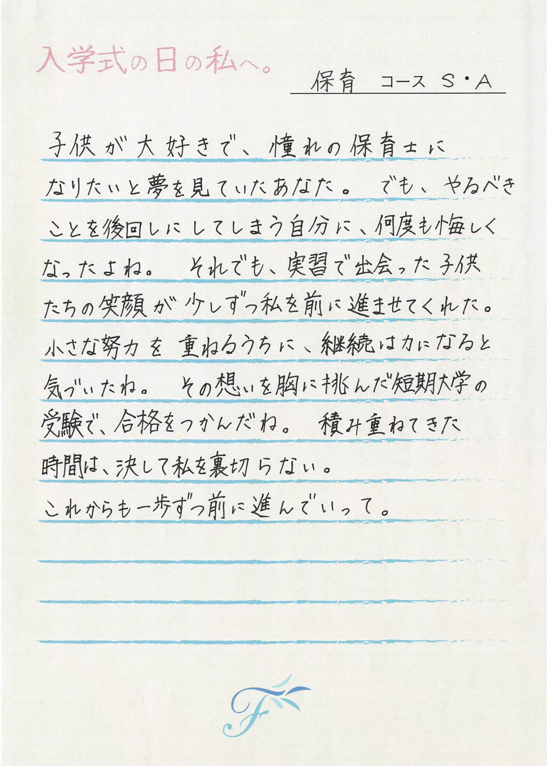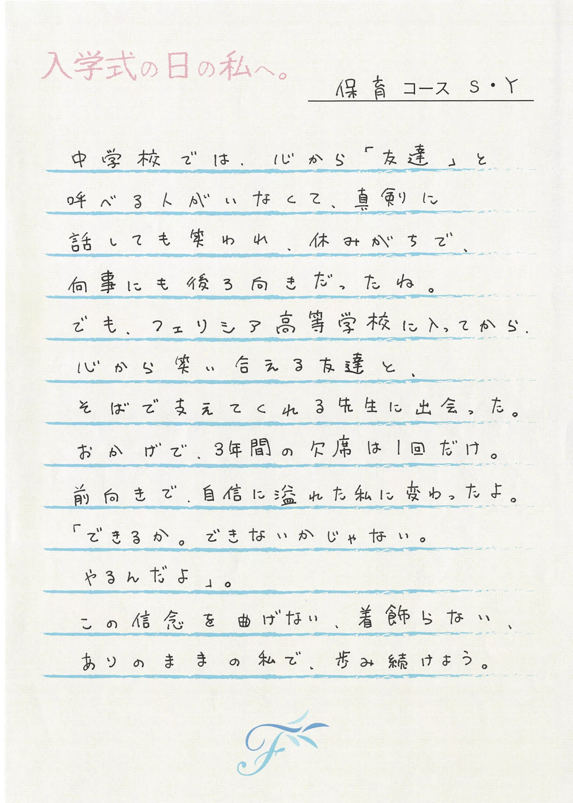 入学式の日の私へ 入学式の日の私へ