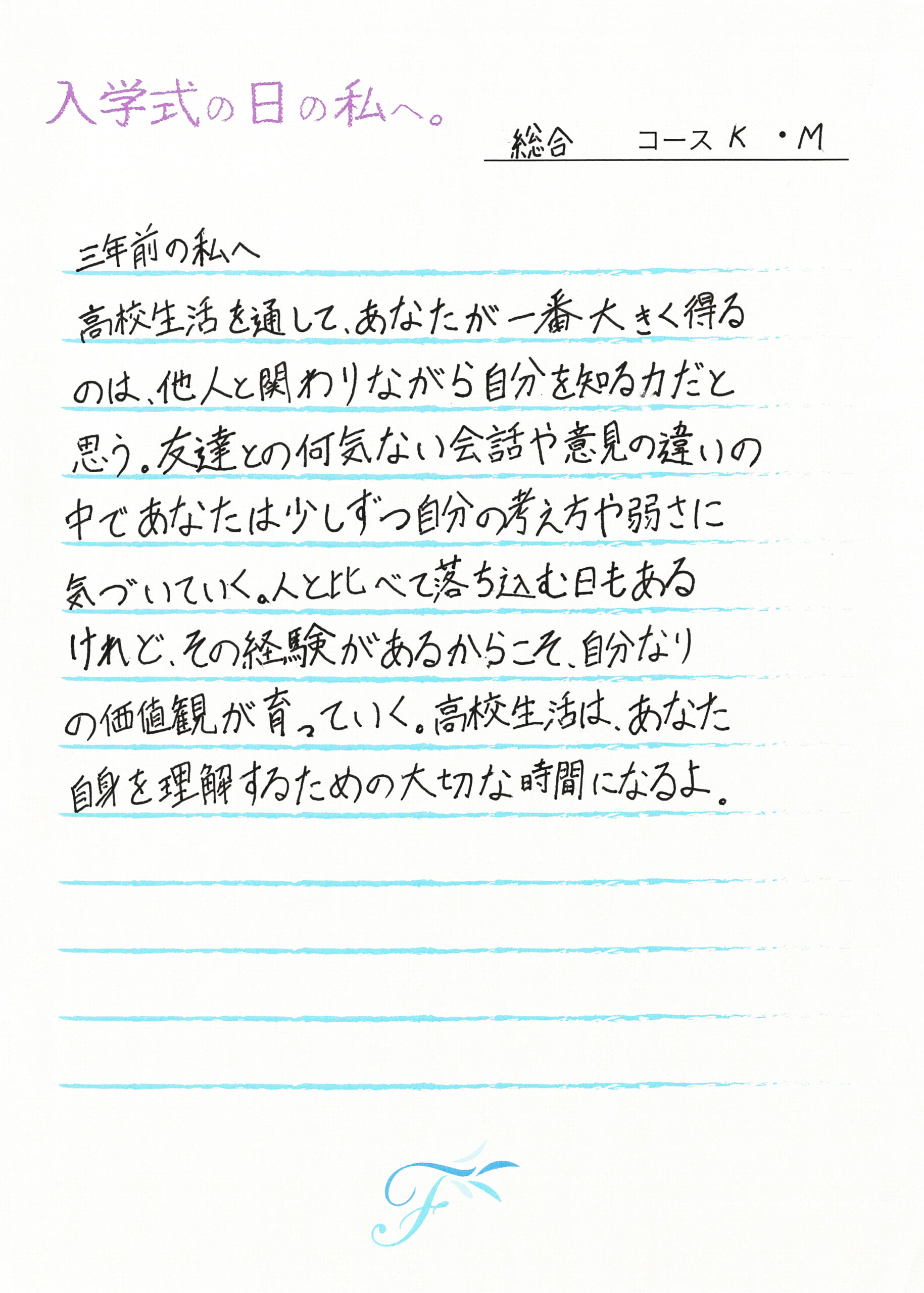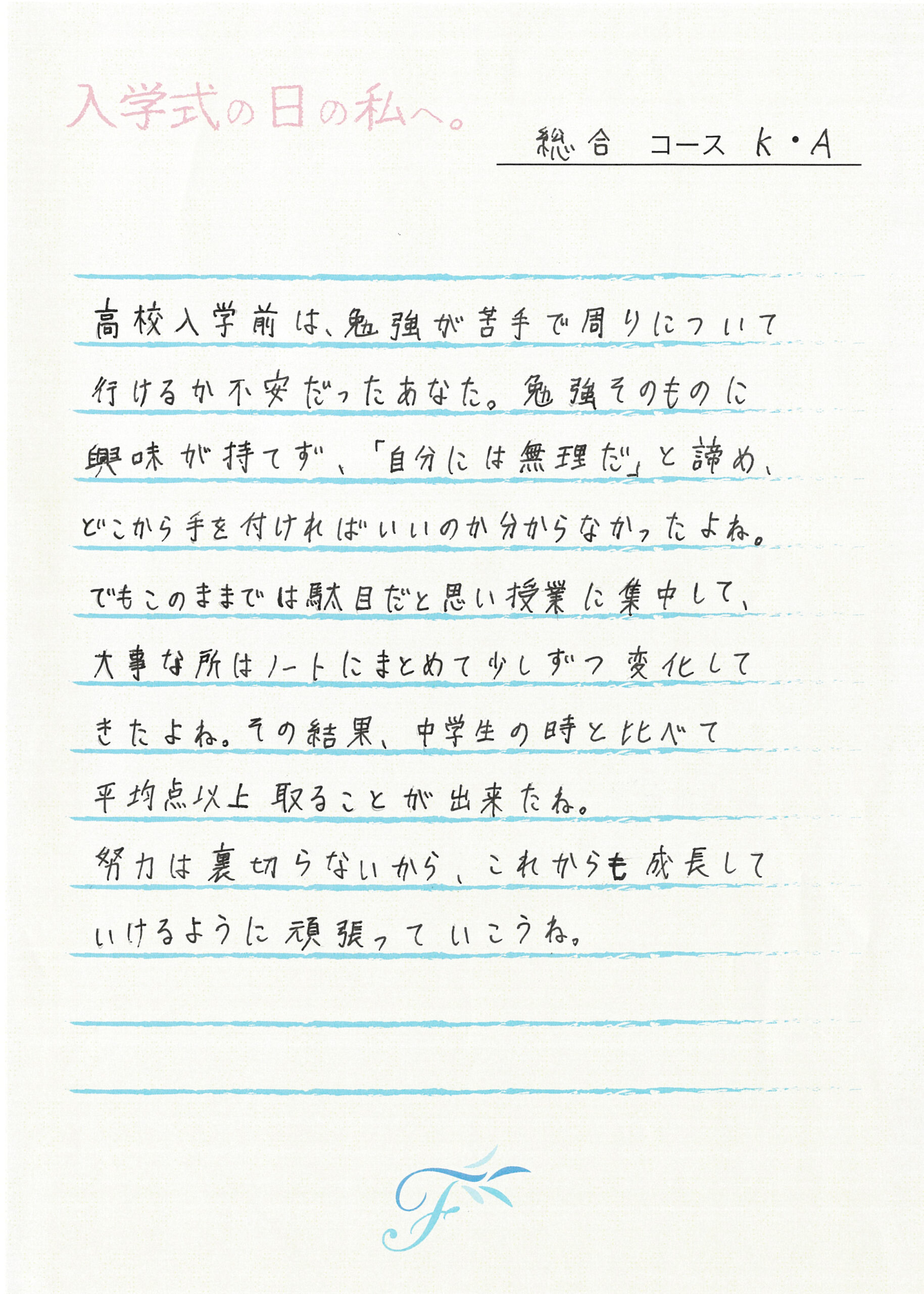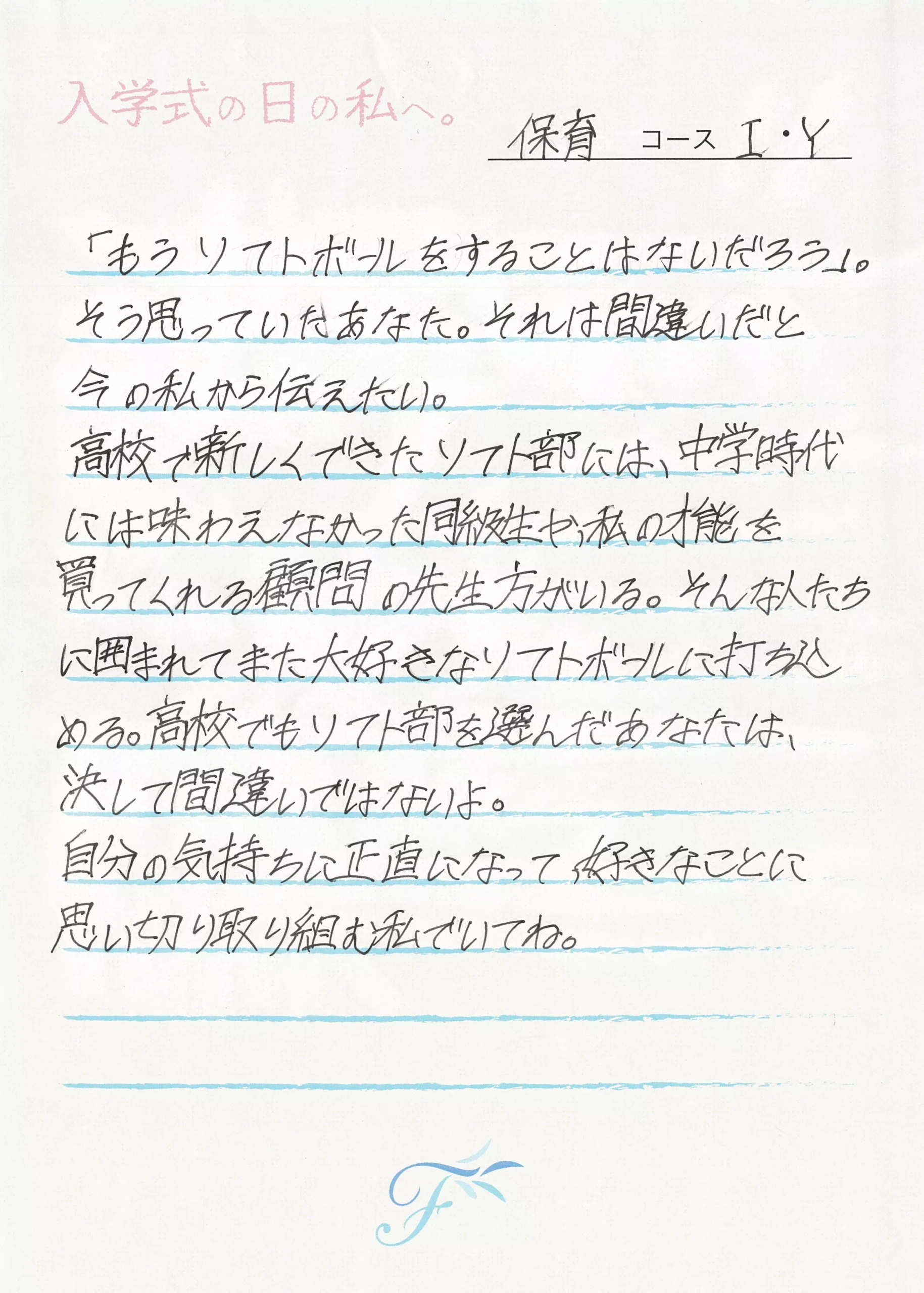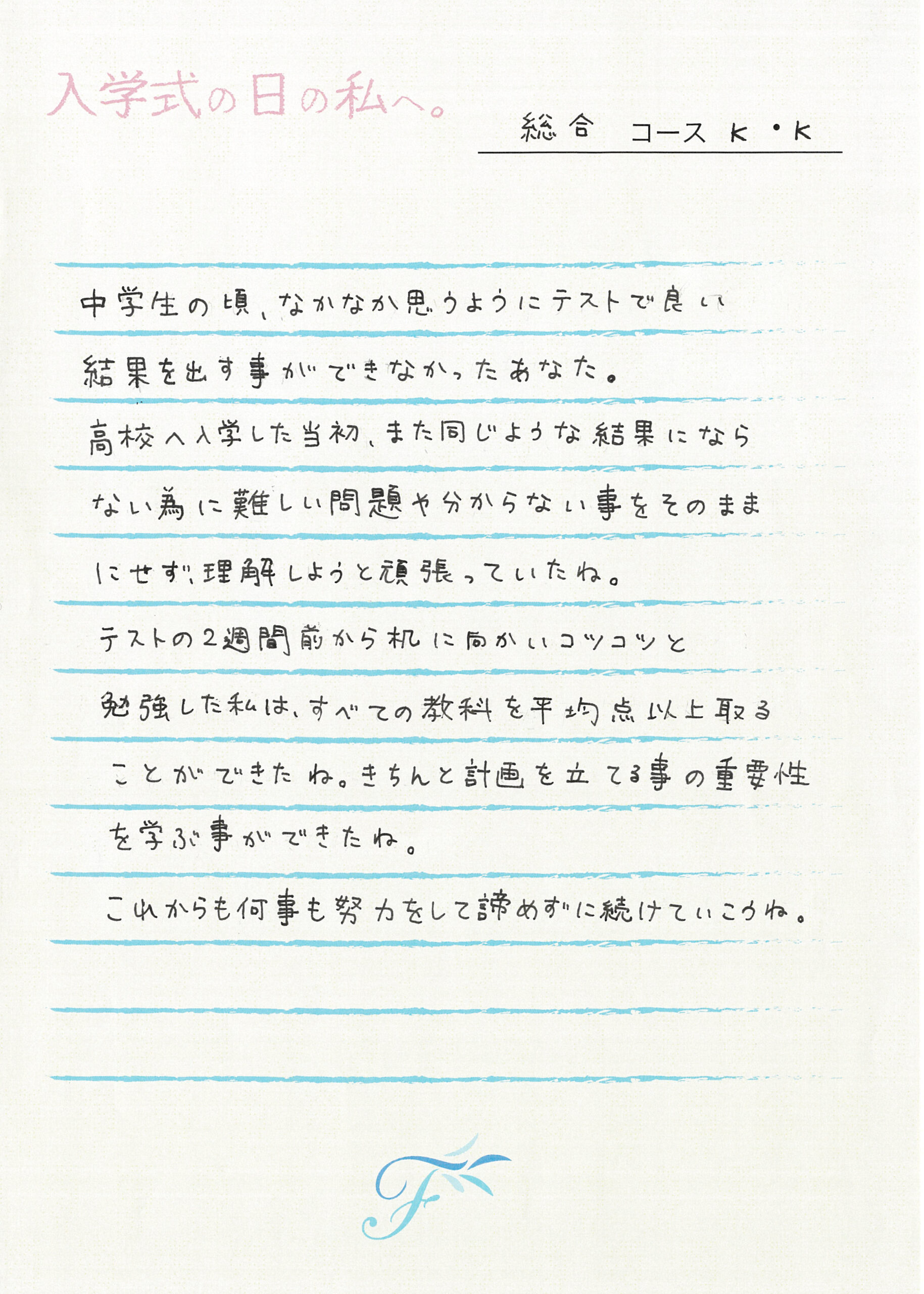 入学式の日の私へ 入学式の日の私へ