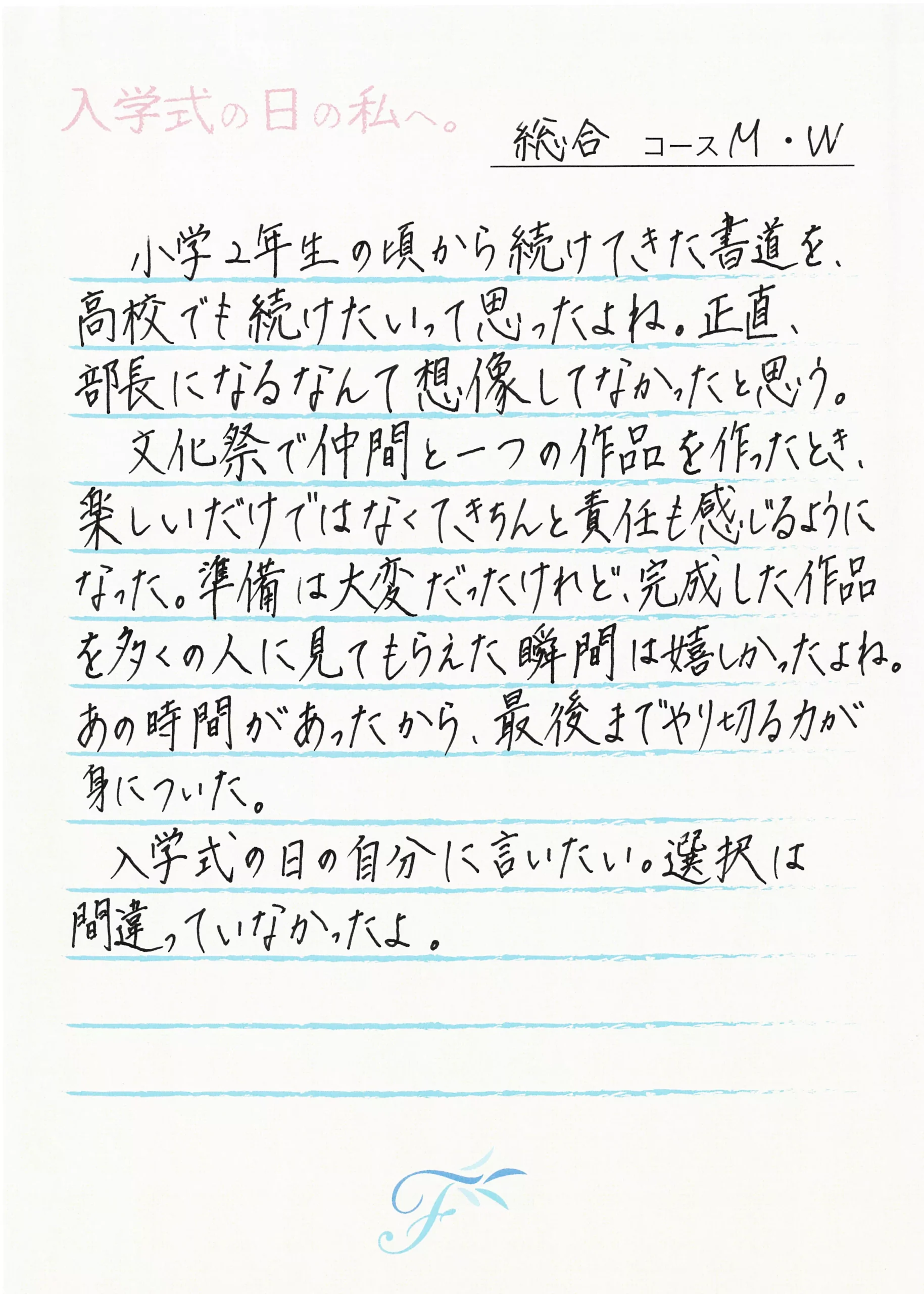 卒業する私から 入学式の日の私へ 卒業する私から 入学式の日の私へ